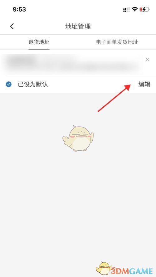 3、在“退货地址”界面点击【编辑】,填写地址信息后保存即可。