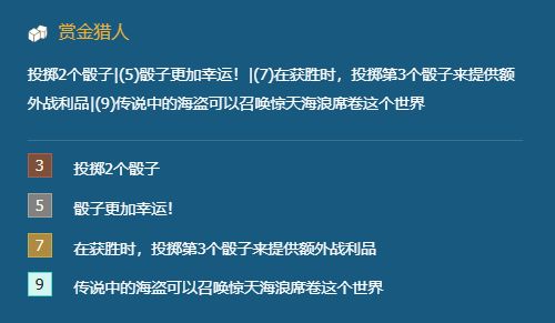 赏金可以说是S6的必玩娱乐羁绊,同时这次双城传说回归还新增了9赏金羁绊,不过需要海克斯拿到赏金心、赏金徽、赏金魂并且上到9级找到塔姆才可以开出来,难度十分大,如果能遇到【机械协助】这个可以让羁绊 1的城邦话,难度会稍微降低一点,十分值得大家去挑战!