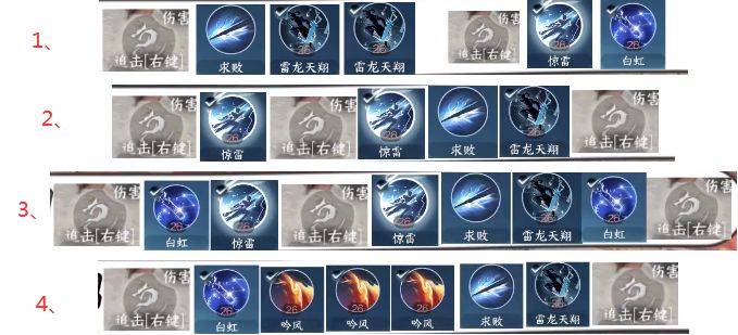 3、追击+白虹+惊雷+追击+惊雷+求败+雷龙天翔+白虹+追击。