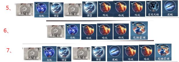 5、追击+白虹+惊雷+追击+惊雷+吟风+吟风+吟风+雷龙天翔+求败。