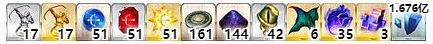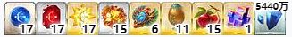 总计:弓之辉石*17、弓之魔石*17、弓之秘石*17、八连双晶*15、智慧之圣甲虫像*6、真理之卵*11、悠久果实*15、传承结晶*1、量子*5440万