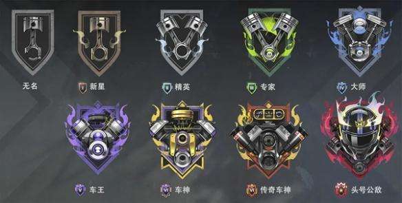 1、游戏中共有9个排位等级,从无名、新星、精英、专家、大师、车王、车神、传奇车神到头号公敌。