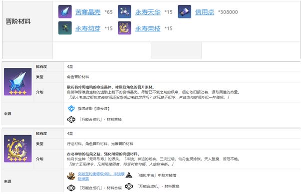 4、以下是角色技能的突破材料,也是只拿一种举例,其他的略有差别。