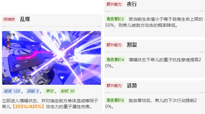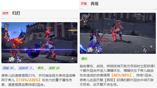 2、天赋是这个角色的核心机制,击杀再现,并且希儿本身速度快,能打出更多回合。