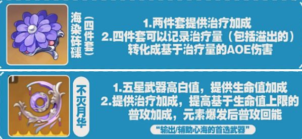 3、珊瑚宫心海圣遗物首推就是海染砗磲四件套,心海的治疗量和强化普攻伤害都和生命值挂钩的,如果没有这个被怜爱的少女四件套也是一个不错的选择。