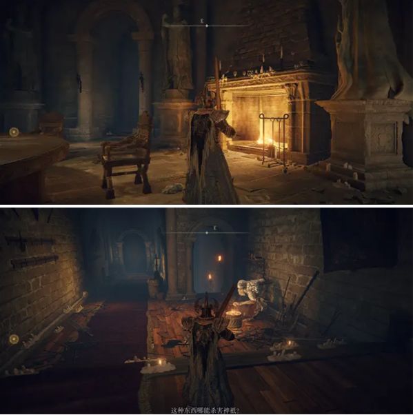 3、东西到手之后,再回去跟小红帽对话,她就会跑到大赐福的火炉子旁边。