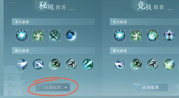 1、打开角色技能推荐界面,左下角有一个应用配置,点进去。