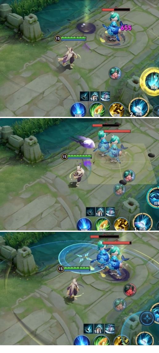 此时,再次释放一次一技能,保证在下落时只命中外侧目标,两个目标的层数就会形成递增,实现无限棋。