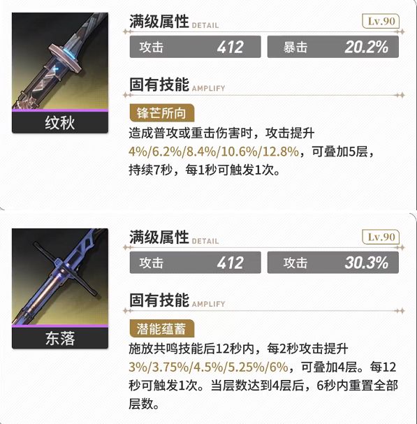 3、忌炎的备选武器则考虑的是大月卡武器纹秋,纹秋加成不错,但是四星武器的基础攻击较低,会导致实际效果不好。
