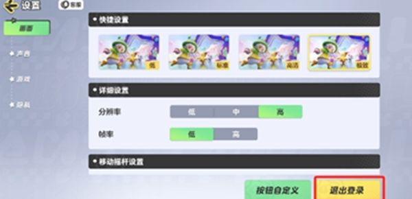 2、接着玩家进入到游戏设置中,选择画面页面,在右下角可以看到退出登录选项。