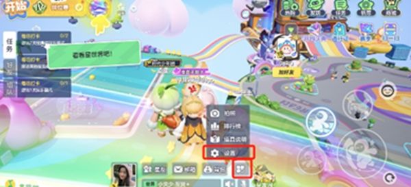 1、首先玩家进入到游戏界面,点击下图下方中间偏右的选项,找到设置功能。