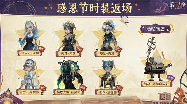 第五人格感恩节返场皮肤2024?在第五人格中,感恩节活动即将回归,这次将带来多个稀世品质的时装,让广大玩家期待不已。玩家可以通过使用碎片和回声来购买这些精美的皮肤,给角色增添更多个性和魅力。很多小伙伴可能对这次感恩节返场的皮肤并不太清楚,接下来就让小编为大家详细介绍一下吧!