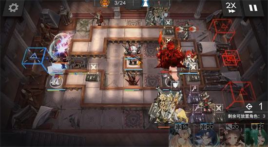 1.先下W,然后桃金娘,之后W开技能,费用好了立刻在旁边下砾。否则boss会技能打掉W直接秒掉W。煌朝上,42朝左打boss,如果boss有盾别放在盾那边。