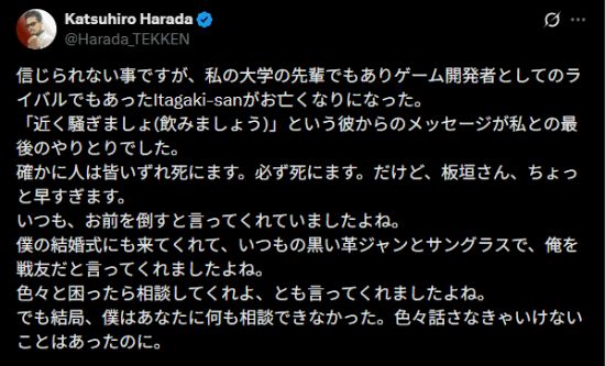 《铁拳》制作人悼念板垣伴信忆往昔 叹息对手离去太早