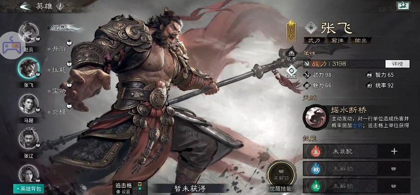 第三个为大家推荐的就是张飞,张飞的效果目前是很适合放在前排的,这个角色他本身就算是没有培养,基础的血量都是要比其他武将高出一点的,而且在防御数值上面有很大的上限可以提升起来,一般来说,他在前排的话,抵挡住敌人火力的时间还是比较久的,而且他可以带来一定的嘲讽技能,影响到敌人,如果敌人是想要攻击我方的一些脆皮角色,他的这个嘲讽就可以直接将对面的输出拉到他的身上来,这样他就可以扛起来整个队伍的伤害,让后排的输出角色可以尽情的释放自己的核心输出技能,除了他的硬抗效果之外,控制大家也是可以用一下的,因为他的技能里面控制效果也有,可以让敌人短时间之内无法行动,所以后期如果大家为他升星的话,绝对是非常好用的一个肉盾角色。