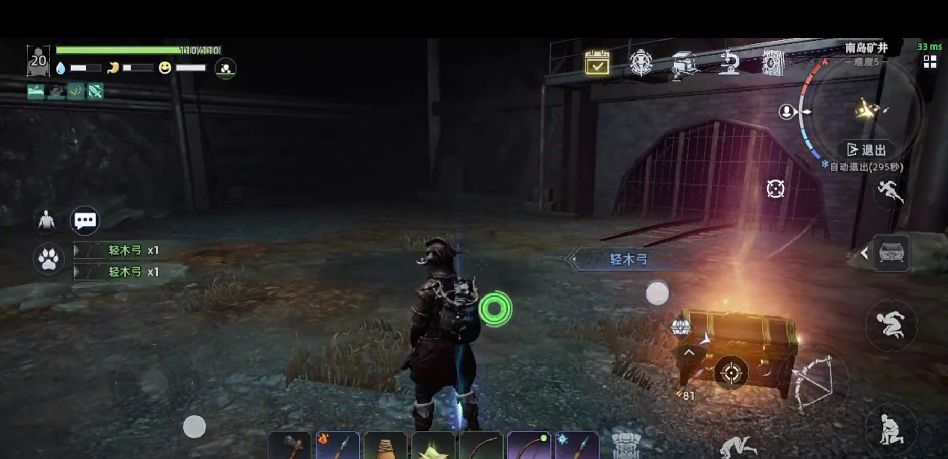 玩家在进入到南岛矿井里面以后可以往前走一段距离会看到一个箱子,打开箱子能够获得燧石,随后在继续往矿井深处走会看到两条道路,这里玩家选择左边的路口进去,进去以后会出现一道透明的膜将入口给挡住了,这里玩家只要直接用手触碰透明膜就能直接进去。
