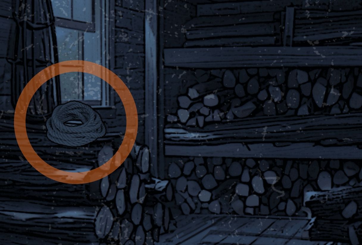 柴房:拿取柴火堆上的绳索