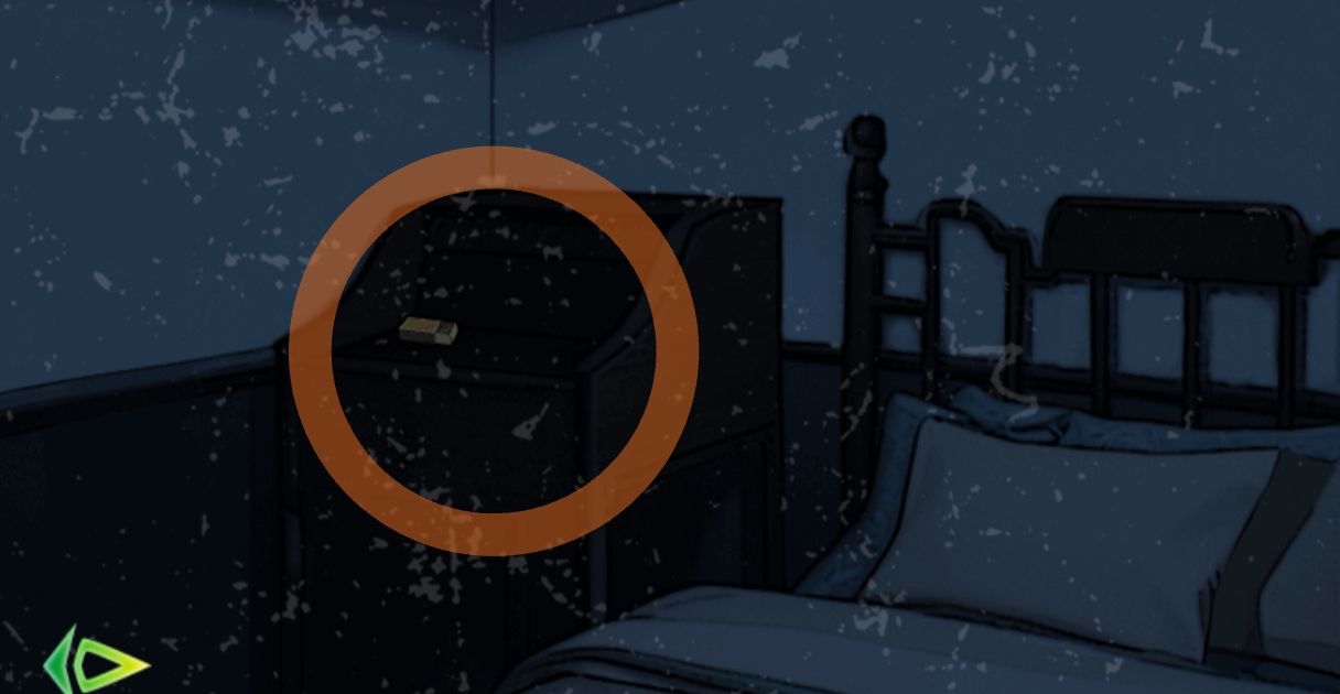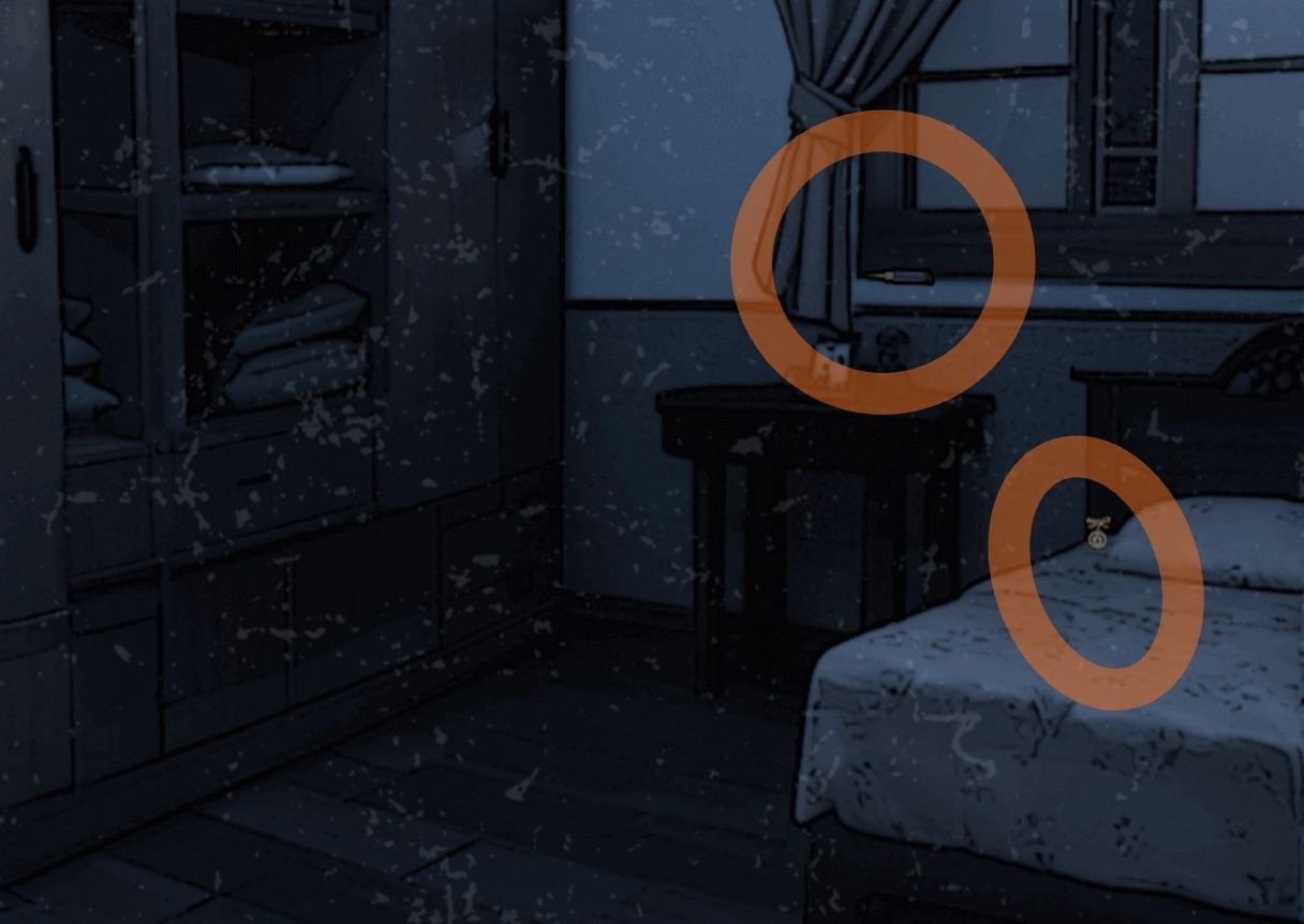 向右进入戏台下的房间,拿取窗台上的胶水和床上的珍珠耳环。
