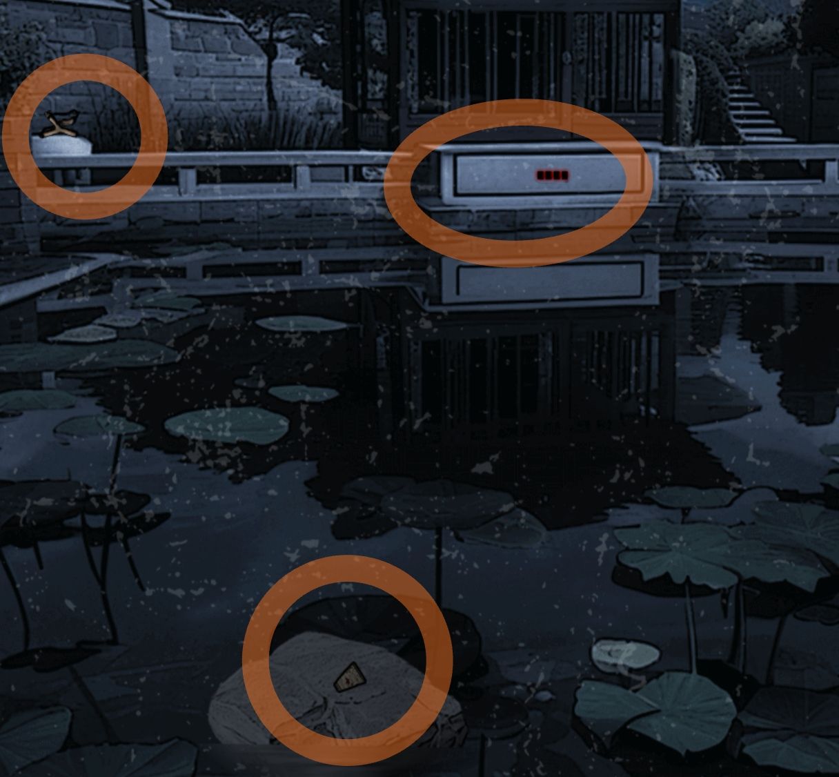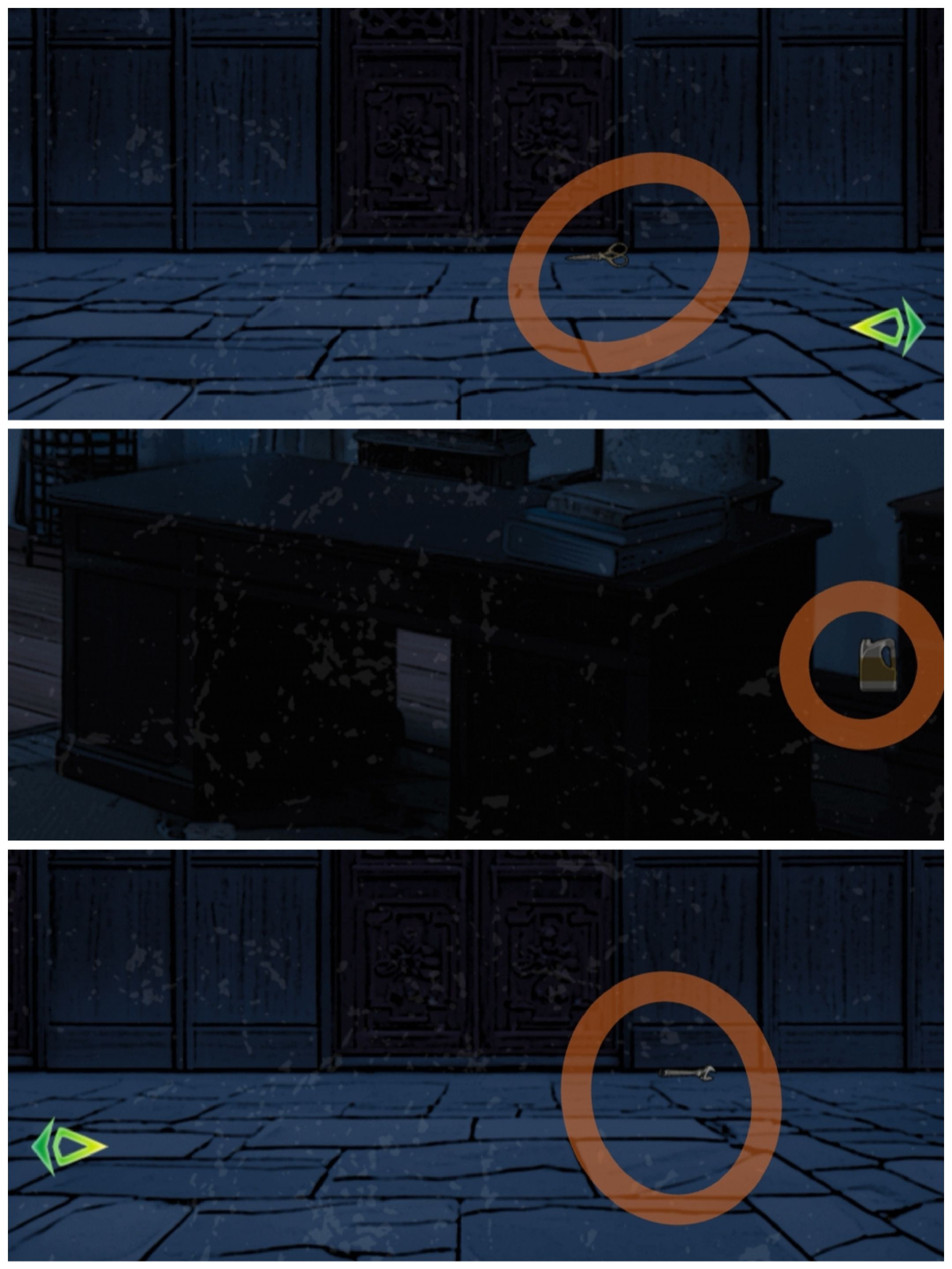 门楼:进入房间遇到守卫鬼混,需要跟他玩个点烟游戏(先点右边的烟,过2~3s点中间的,再过1~2s点左边的,只能提供一个大概范畴的时间),获得冥币,提示去找厨娘。