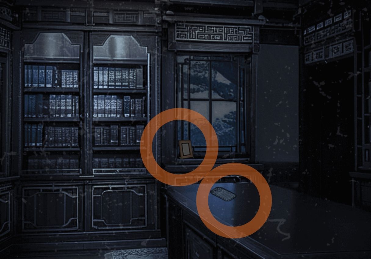 找到女鬼头后交给她,进入房间点击桌子上的无字木牌,用特殊药水得到棺字牌,拿起窗台上的相册。