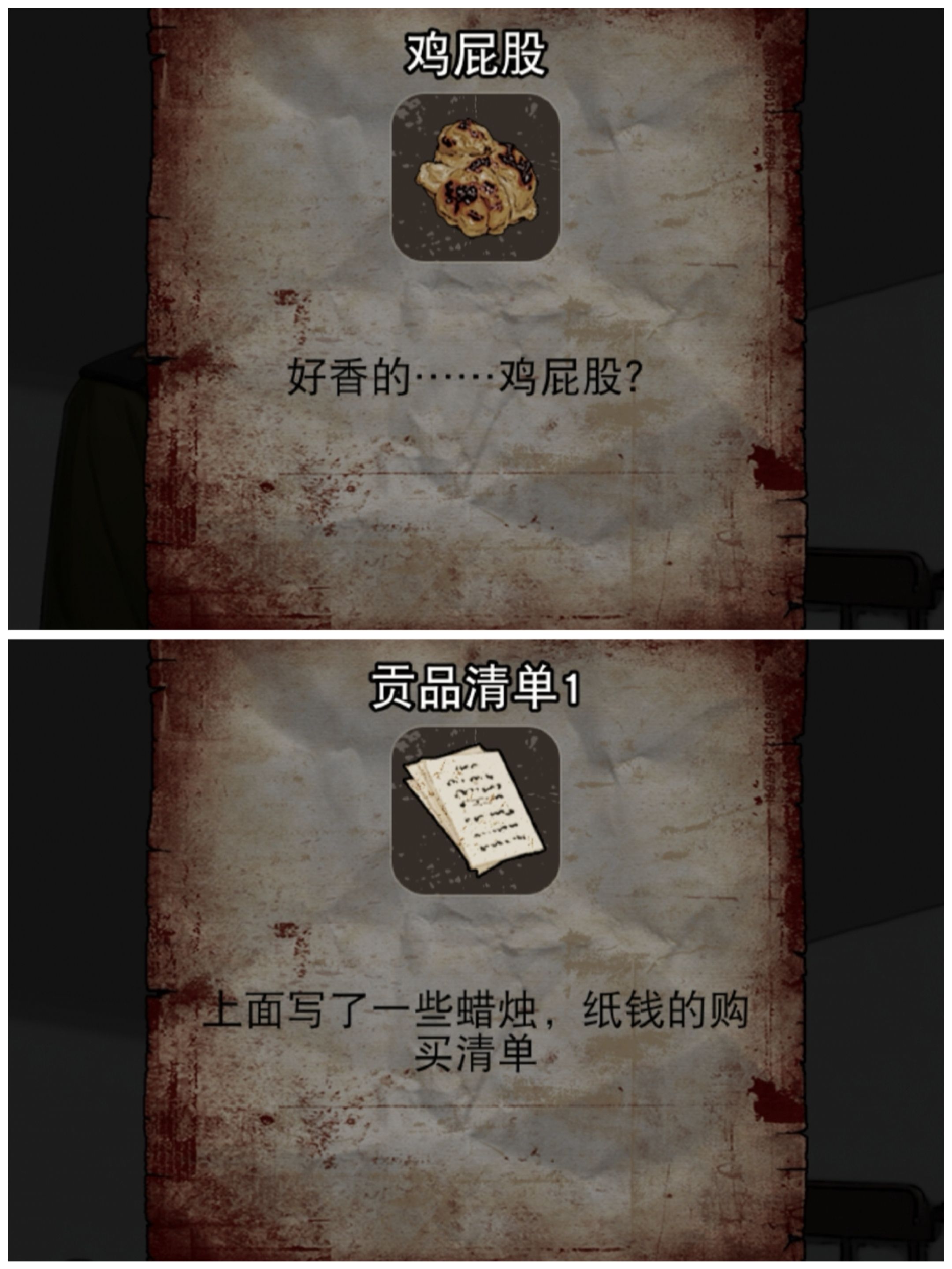 自己回到房间,程贤送来一张贡品清单1,跟他对话: