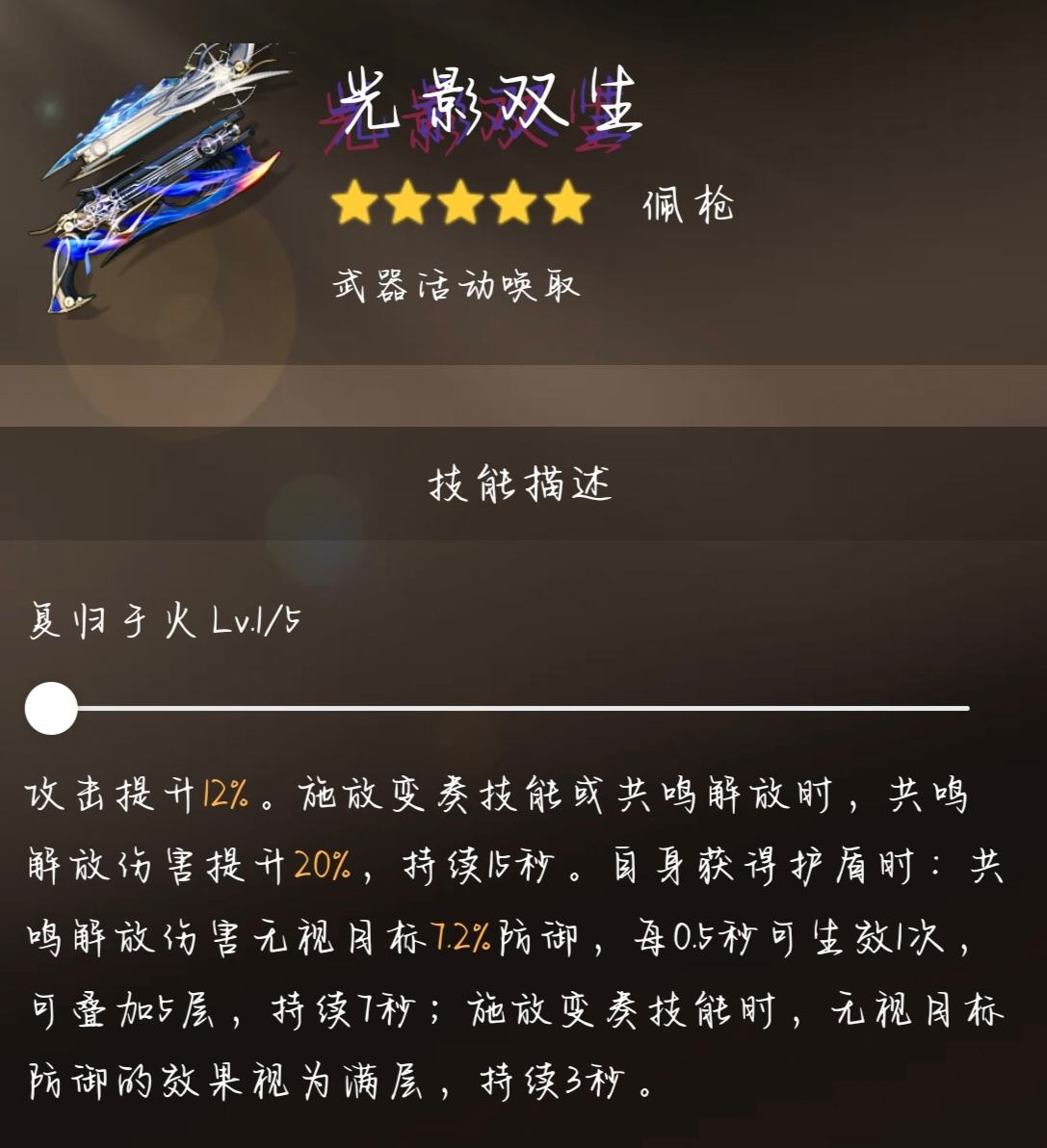 专武「光影双生」是最优选择。它能提供高额暴击伤害,并且特效能循环提升声骸技能与重击的伤害,完美契合输出模式 。