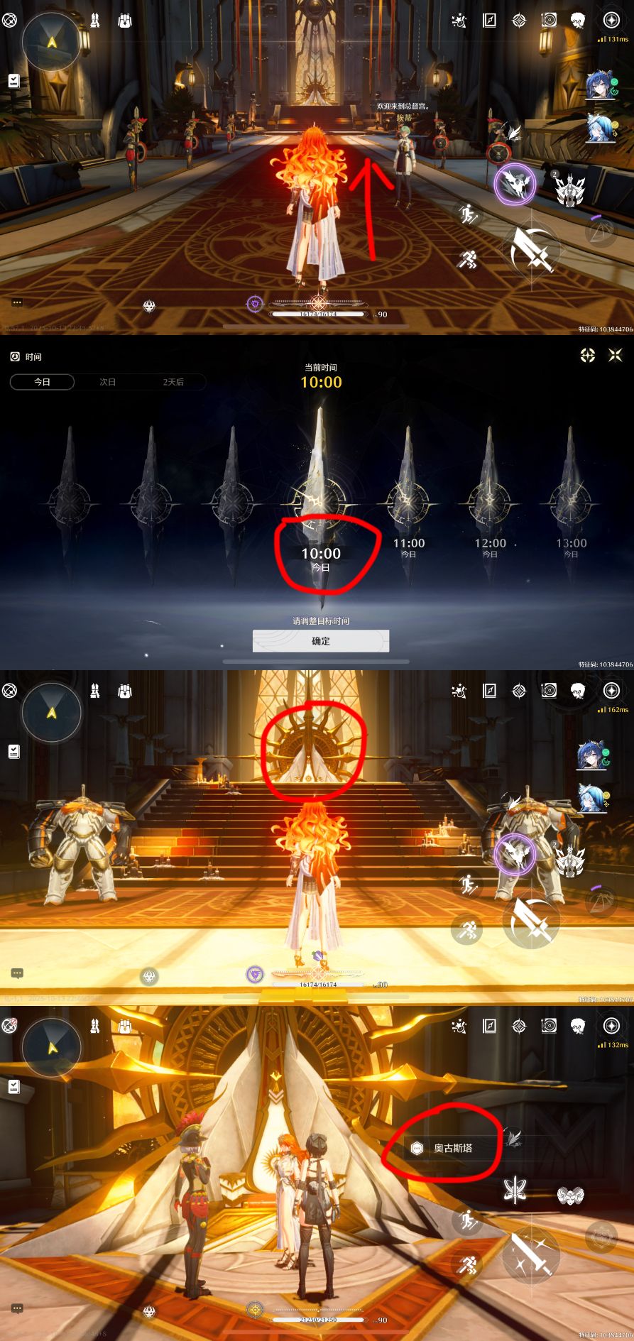 进入宫殿后,走至楼梯前,调整时间至:次日早上10:00,到楼梯尽头太阳标志处,与奥古斯塔对话