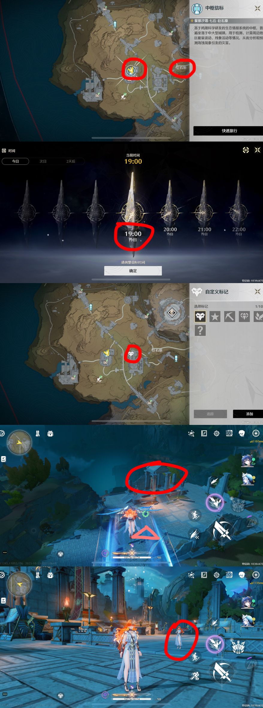 传送至:七丘地图左半部分的巨石原-中枢信标,调整时间至:次日晚上19:00(要到下图中标记位置的地方)小地图-东偏南一点点