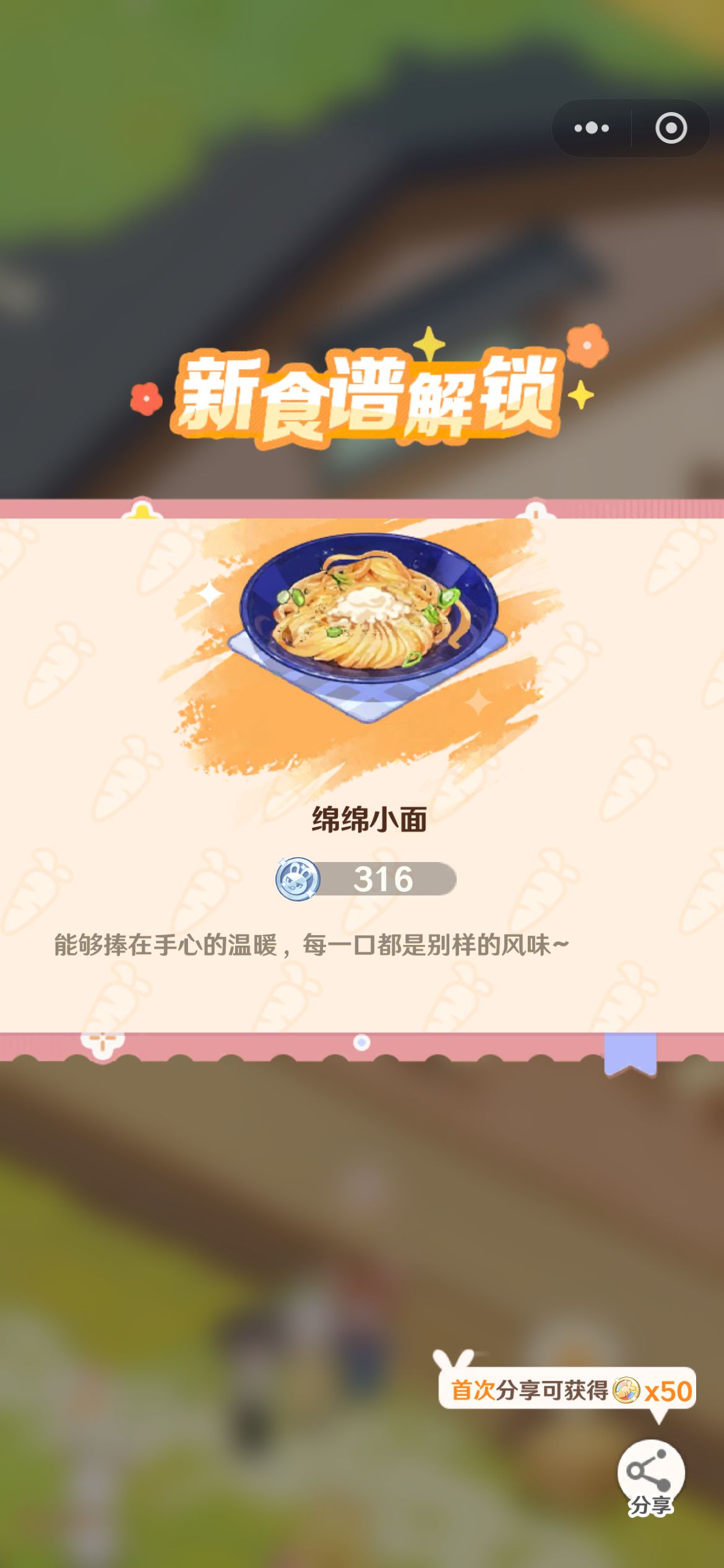 绵绵小面可谓是最美味的面食了,这是一位新顾客的需求,玩家需要获得料理锅一个,奶品精致机一个,再加上环境评分,环境评分在这个菜谱中是缺一不可的,如果环境评分缺少的话可以前往尾尾木作中心,通过三消的方式合成小店地毯所需要的材料。这样具备了所有的基础设施之后,就可以开始食谱的研发了,首先需要选择一份面条作为主食,然后再按照顺序放入一瓶清水,第3步再放入一份奶油,最后再放入一瓶清水搅拌就可以了,每一次指针在转动时,玩家都要做好预判,让它能够精准地停留在每一份原材料上。制作好绵绵小面之后,店铺的经营评价分数能够加48分。