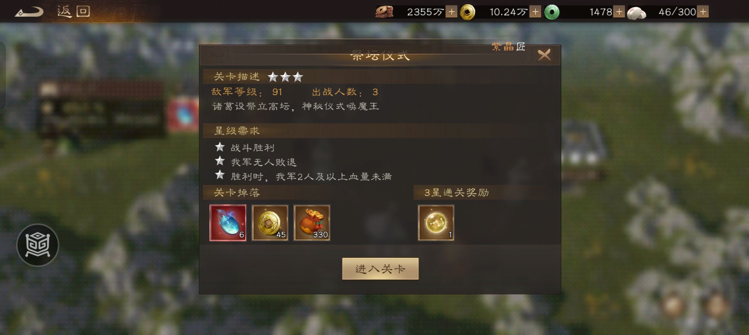 这一关的星级要求主要是我方无人败退以及胜利时我军2人及以上满血