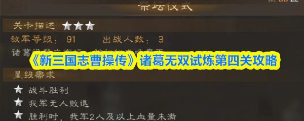 以上就是《新三国志曹操传》诸葛无双试炼第四关攻略,更多相关攻略,请关注更新!