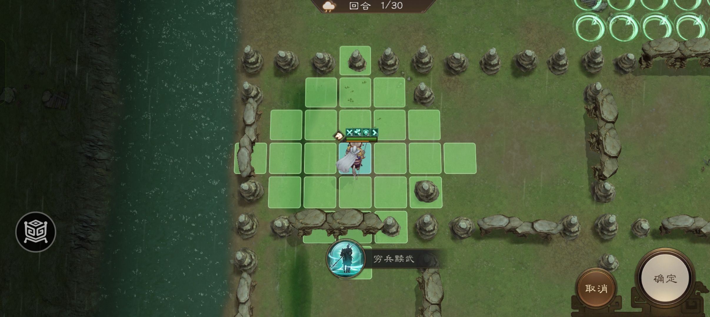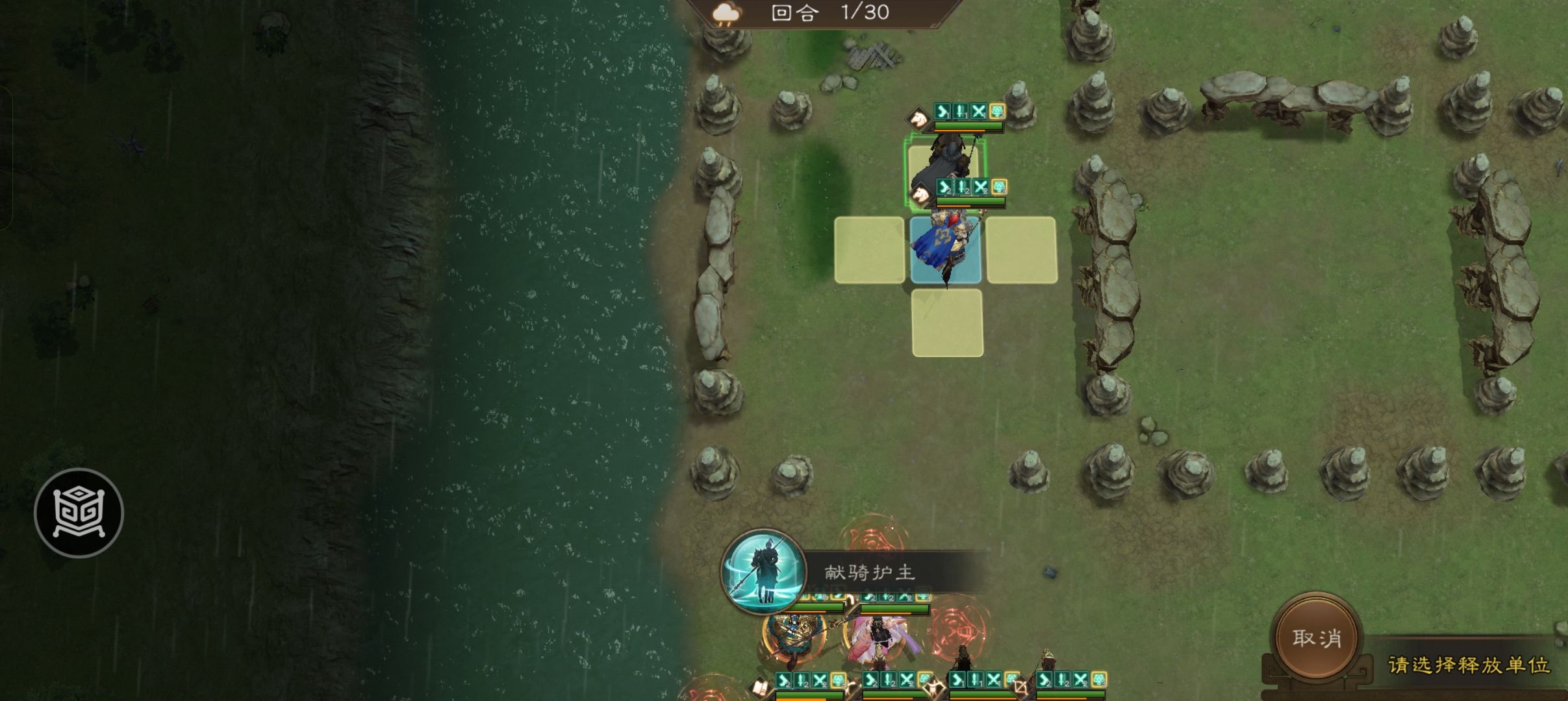 开局请把公孙瓒,曹洪,貂蝉,曹操按此站位,其他人随意上满就行