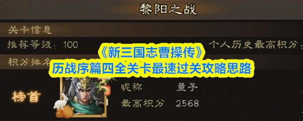 以上就是《新三国志曹操传》历战序篇四全关卡最速过关攻略思路,更多相关攻略,请关注更新!