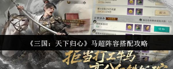 三国天下归心马超阵容怎么搭配?在游戏中有不少的人都想要把马超当成核心,但是却并不知道怎么样去搭配阵容,如何才能够提升马超的优势。其实不管是新手刚刚开局还是中期,想要用来推图都可以了解一下三国天下归心马超如何搭配阵容。这一个阵容还是很不错的,性价比也很好。
