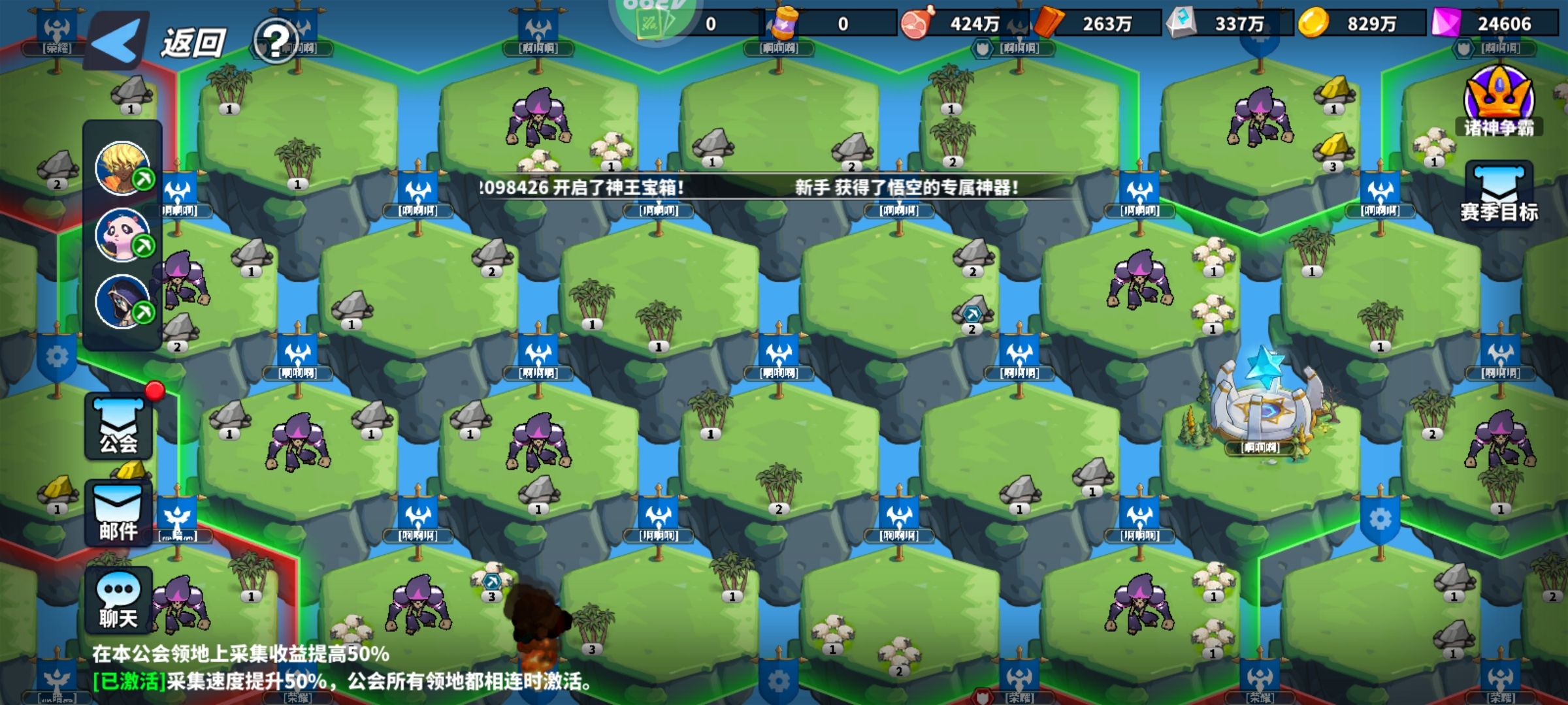 空岛里面有很多资源都需要抢夺的。采集的资源可以抢夺,打赢矿战可以获取后续的采集时间:领地也可以抢夺,打赢了能获得诸神争霸排名积分,积分越高,获得的排行奖级也越好。