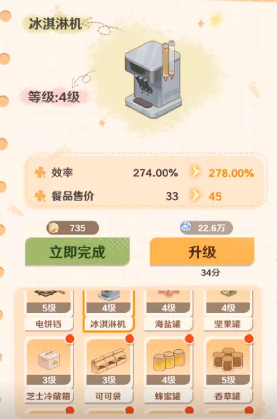 首先在大家经营店铺时,招募大量的店员为自己打工,为自己效力,店员的厨艺越好,菜品的售价就会越高,以此会给自己带来极好的经济效益。很多菜品,都需要选择品质较好,而且等级较高的厨具,才能确保菜品的口感。在大家制作芝士时,使用到芝士的冷藏箱,那么此时会让芝士的价格有所增加,立即会增加3。