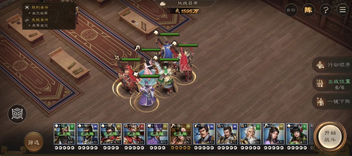 到了第四回合吕布就残血了,再献祭李儒去A一下上个debuff,太史慈1技能再上个dot,其他血多的随便A一下,血少的要么送死要么拖回合,基本上2回合内吕布就吃dot死了。