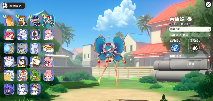 青丝蝶一般是在阵容里面才可以带来足够的能力,想用它的实战能力,这里搭配有很多需要注意的点,目前它的元理是一个比较少见的原理,也就是美丽类型的精灵,她在使用技能的时候可以带来的能力叫做珠华涌动,这个技能是需要大家主动去释放的,使用技能之后,它会朝目标带来一个投掷的动作,将自身身上的法球来投掷到敌人身上,并且对目前的一个敌人设定为自己的主要目标,那么在主要目标周围附近一格之内的敌人,都会作为它的覆盖攻击范围之内的目标,此时所有的敌方目标都会受到它带来的魔法类型伤害,并且在使用这个技能的时候,每一次释放都可以带来额外的投放强化类型法球。