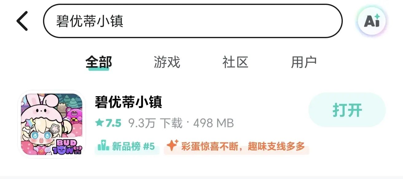 第一步:打开 TapTap,搜索 “碧优蒂小镇”