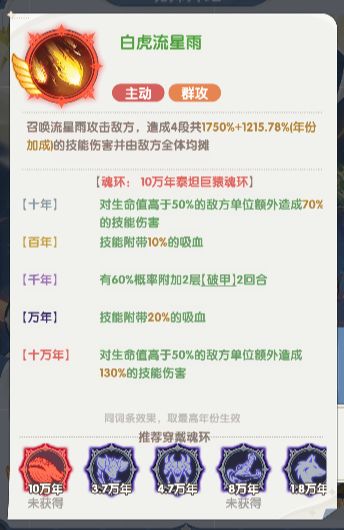 召唤流星雨攻击敌方,造成4段共1750% (年份加成)的技能伤害并由敌方全体均摊