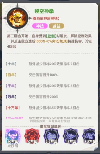 【十万年】期间,触发格挡额外恢复25魂力。每回合仅生效2次。