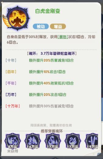 第2回合起,回合开始时35%概率触发,对敌方全体造成500%总攻击的特殊伤害,并降低15%普攻减伤3回合。仅触发一次