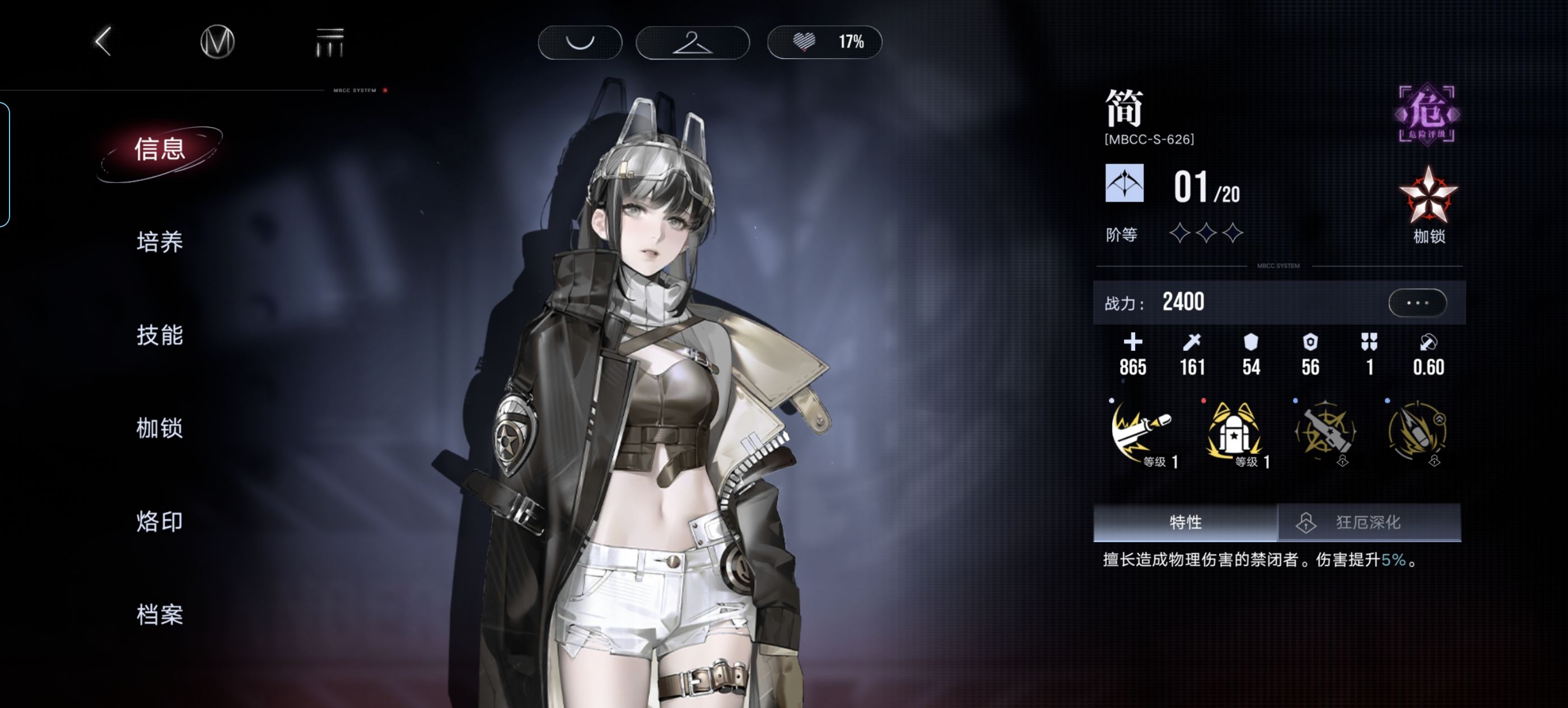 九宫格爆炸伤害,清杂的神。常态清杂甚至超过大部分狂角色。简还没出的时候远程清杂基本就是兰利这种,简就是简单粗暴,解放双手,往那一放技能都不需要按……