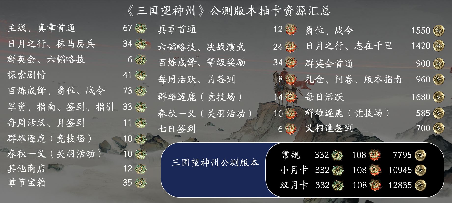 最后再次总结,各位明公通过游玩,便可免费获取的抽卡资源总共为