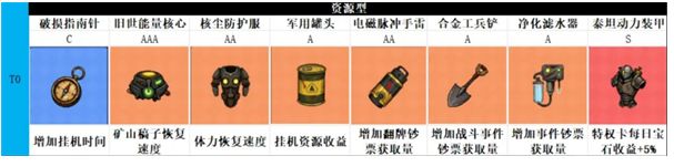 作为养成型游戏,资源为王,所以能带来资源增益的藏品可作为第一优先级升星核心以 恢复速度 资源收益 钞票获取为主,第一个就是破损指南针,品质低 收益高,主要是好升级,获取的收益也很稳定;其次就是旧世能量核心,这个也很不错,优先级也是非常高的,挖矿的资源很可观;再就是核尘防护服,这个很重要 玩家也可以优先考虑,毕竟体力是这个游戏的核心,没有体力什么都干不了。