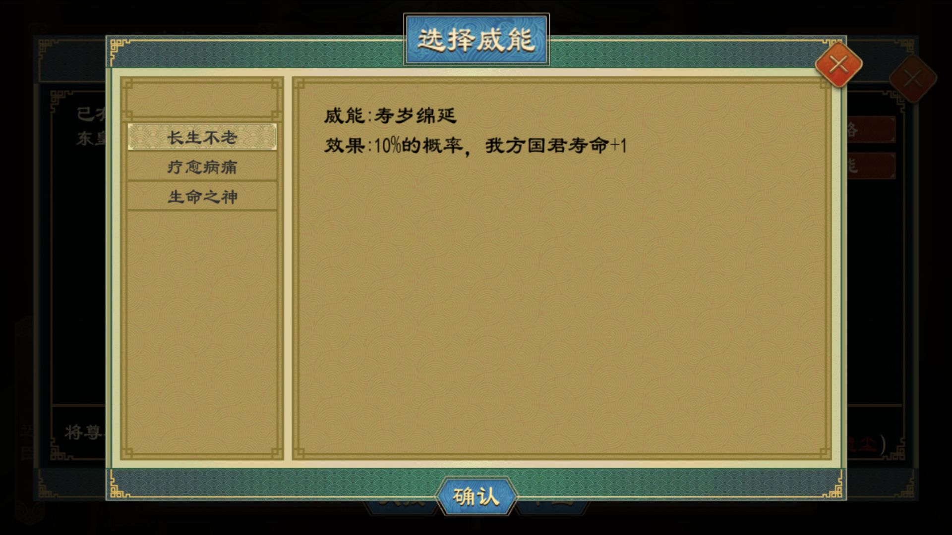 点击对应神格后,按下方的确定即可在神格的效果内选择一种威能。确认神格后,点击右侧的威能选择该神格的效果。