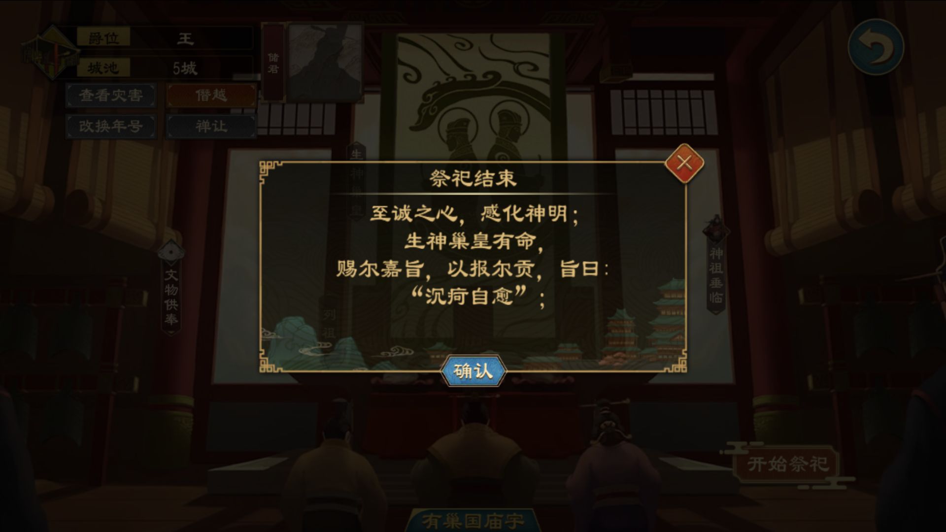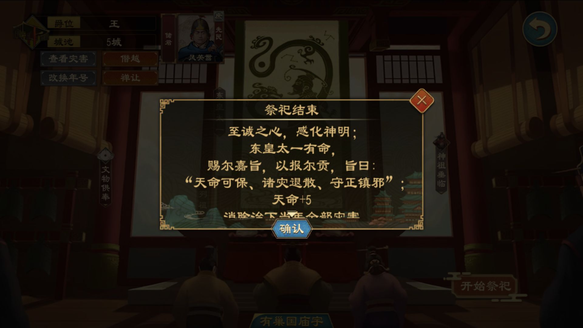 大周列国志神明系统怎么玩,在三皇五帝版本中,新增了神明系统。在先民阶段中,可以将知名先古人物及其他符合条件的人物奉为神明,也可以在触发异神降征事件后设坛祭祀,获得多种多样的祭祀效果。