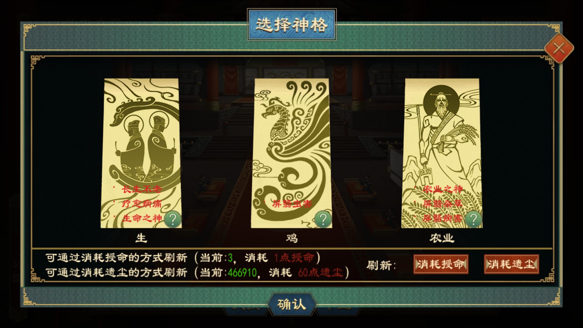 点击对应神格后,按下方的确定即选择完成。若还想更改神格可以再次点击神格按钮进行选择。