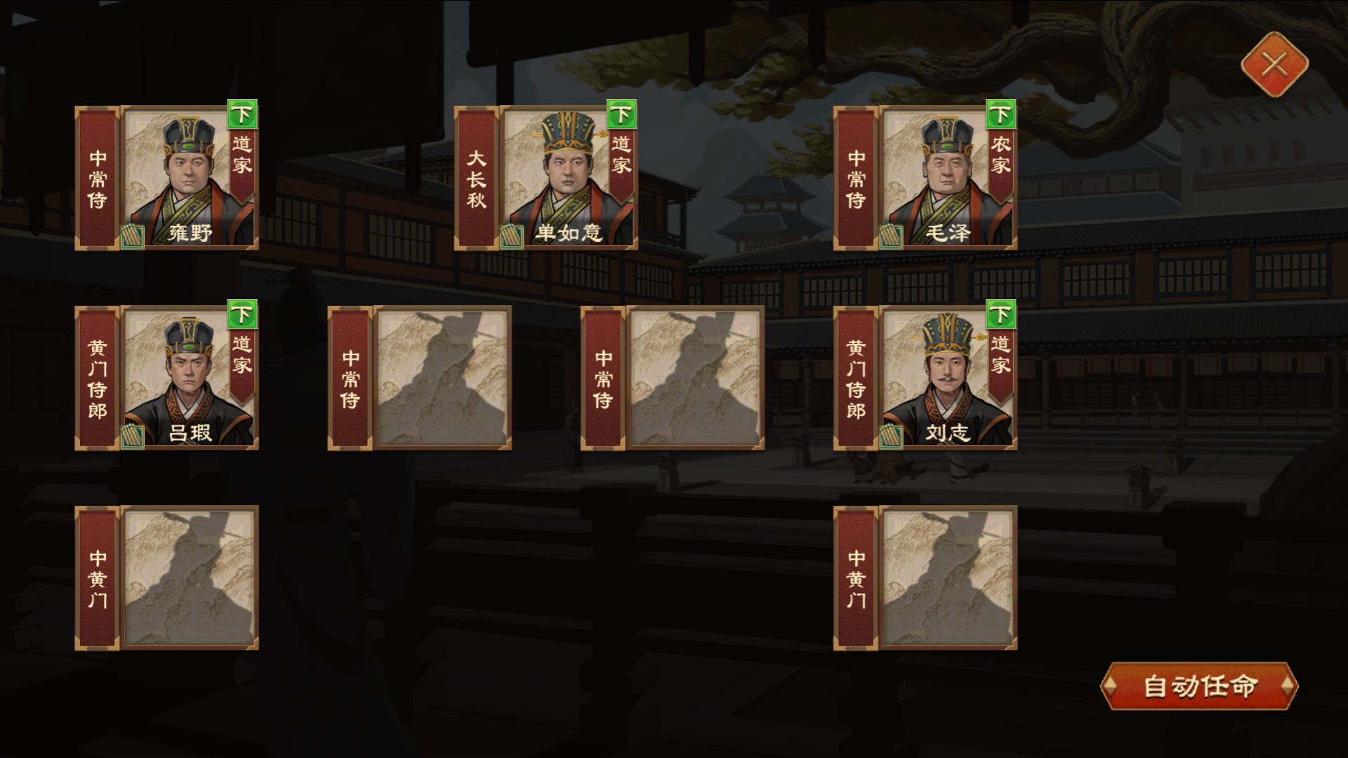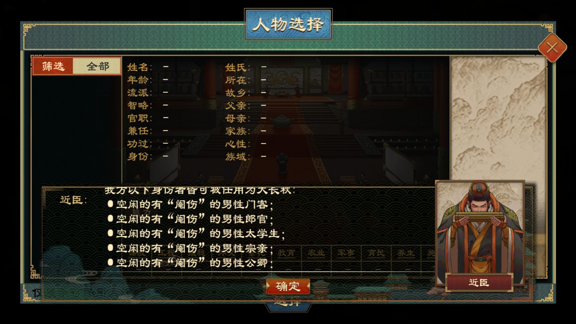 本次更新新增了中朝、后宫、近侍官职,在朝堂上方的中朝按钮中,可以任命辅政人员