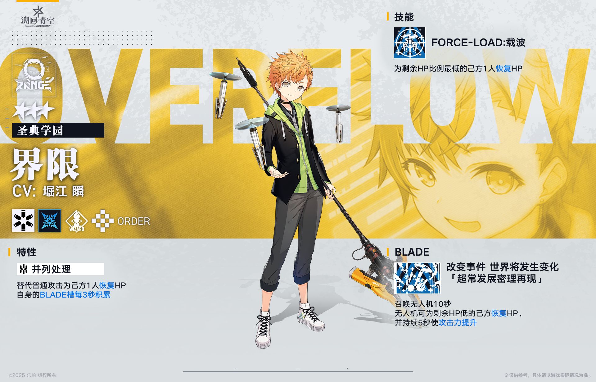 界限是《溯回青空》中极具特色的圣典学园骑士,凭借【并列处理】特性与“FORCE-LOAD:载波”技能,能高效辅助队伍。其终极技能“BLADE:改变事件”可触发《超常发展》效果,足以在关键时刻改变战局。